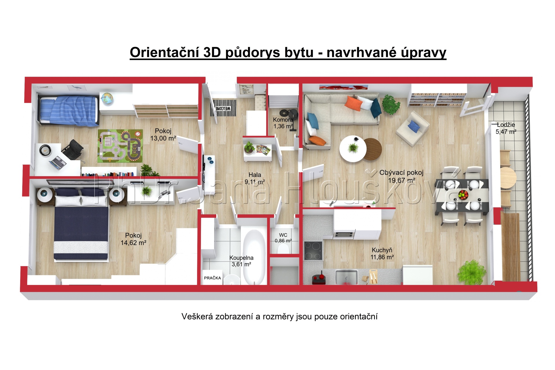 Vizualizace možného uspořádání bytu